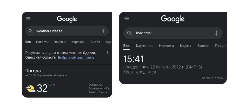 - Local business (voice search adjusts to the user's location, so if a user searches for, for example, «cheap cafe», the responses to the request will be those cafes that are closer to him)